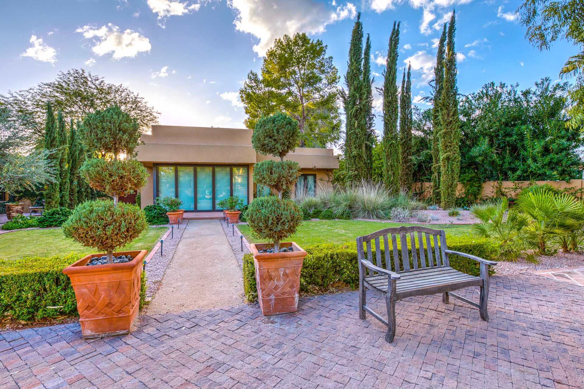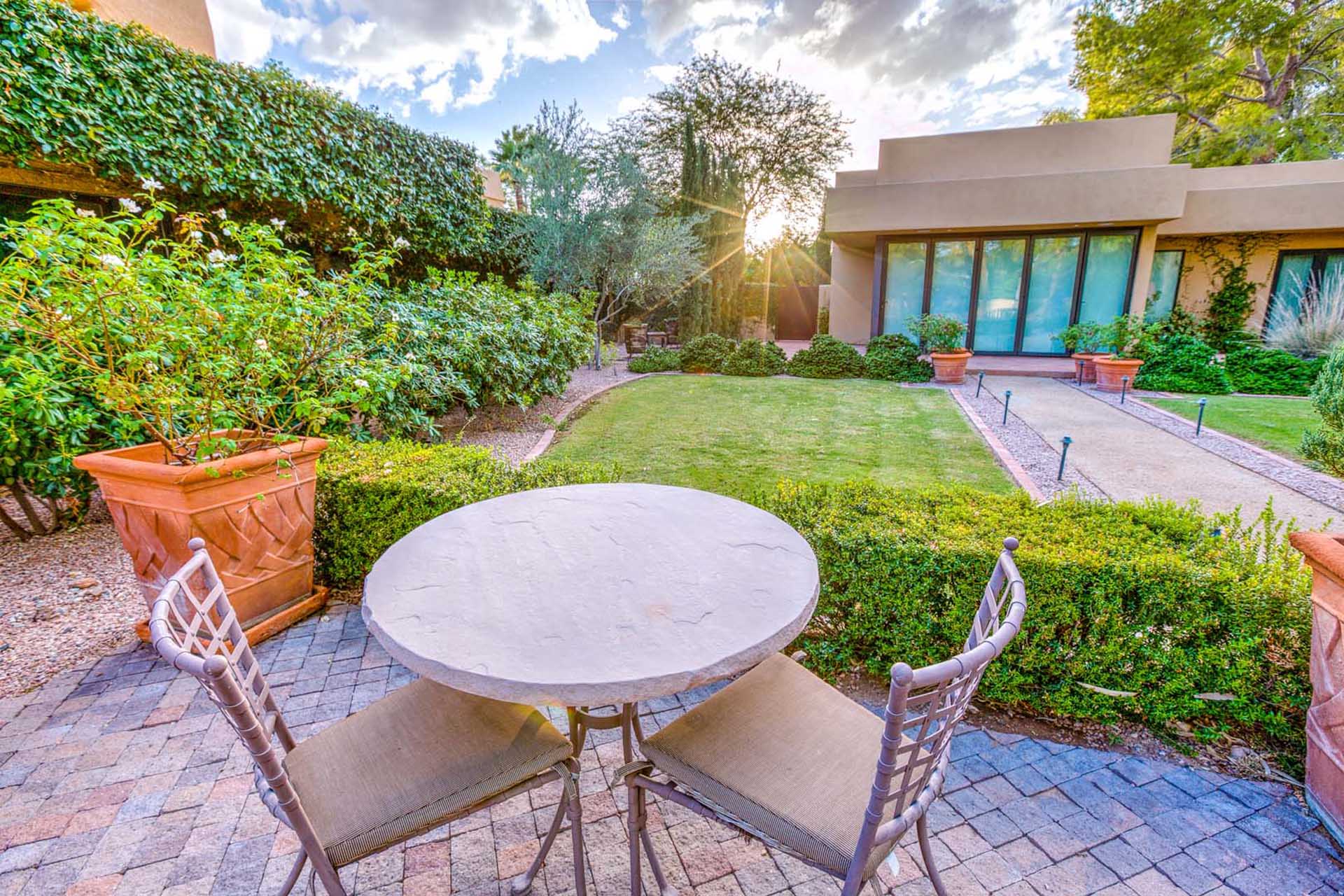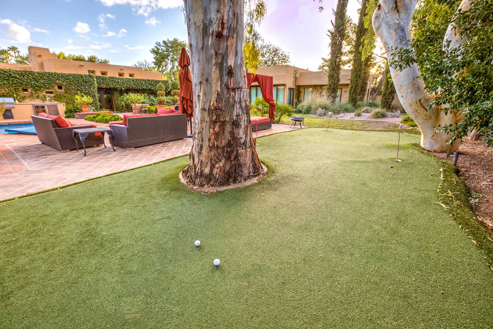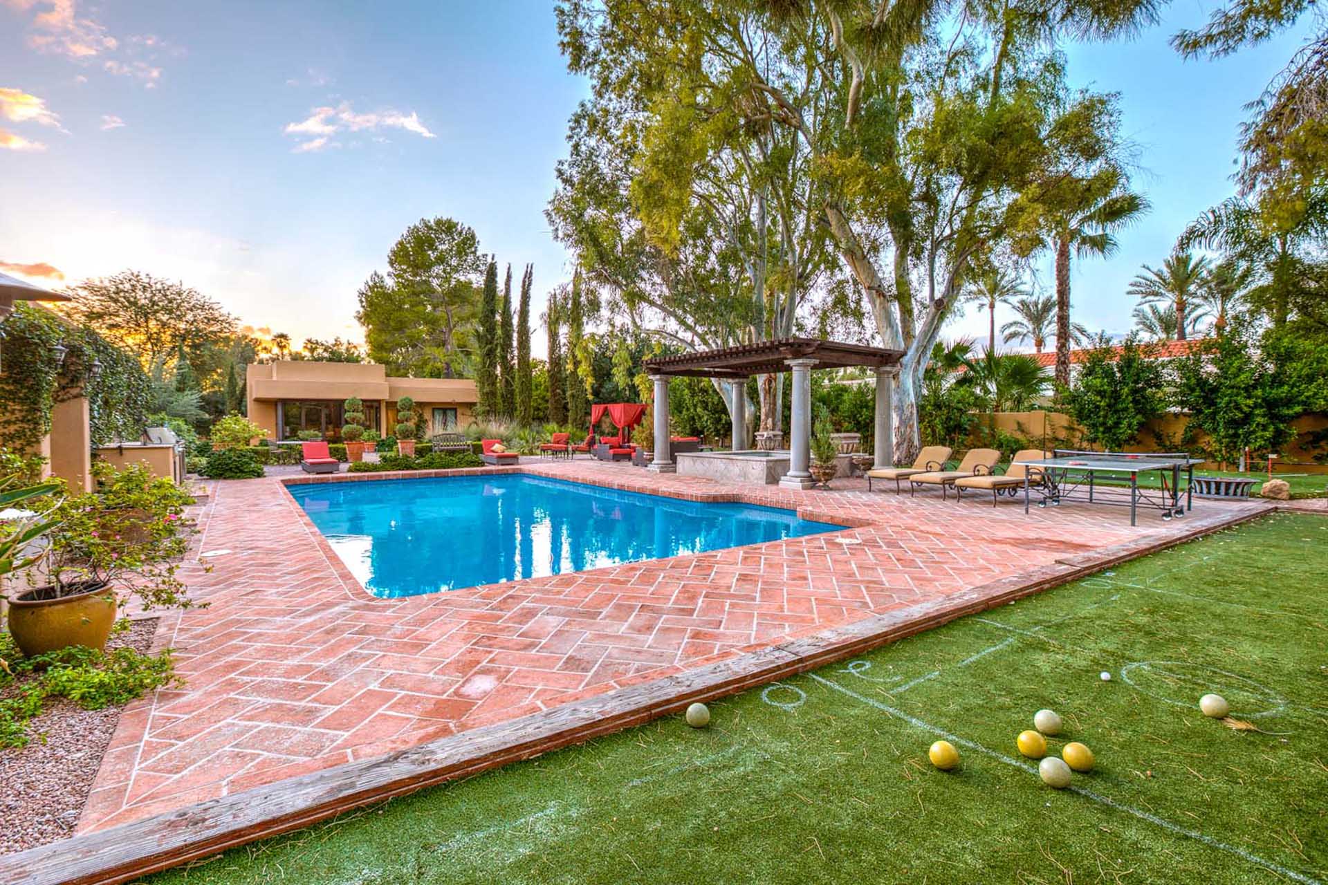 This luxury villa is nestled into the beautiful Paradise Valley landscape. This home is in a quite upscale neighborhood, perfectly placed to enjoy this Alluring Oasis. The grounds on this property are covered in perfectly landscaped serenity mixed with great entertaining features like Bocce Ball, putting green, pool & spa, great BBQ area and outdoor living space with TV. The home boast 6 bedrooms between the main home and the guest casita. This home has it all for you next vacation. Note- Fireplaces not operable and are not for guest use.