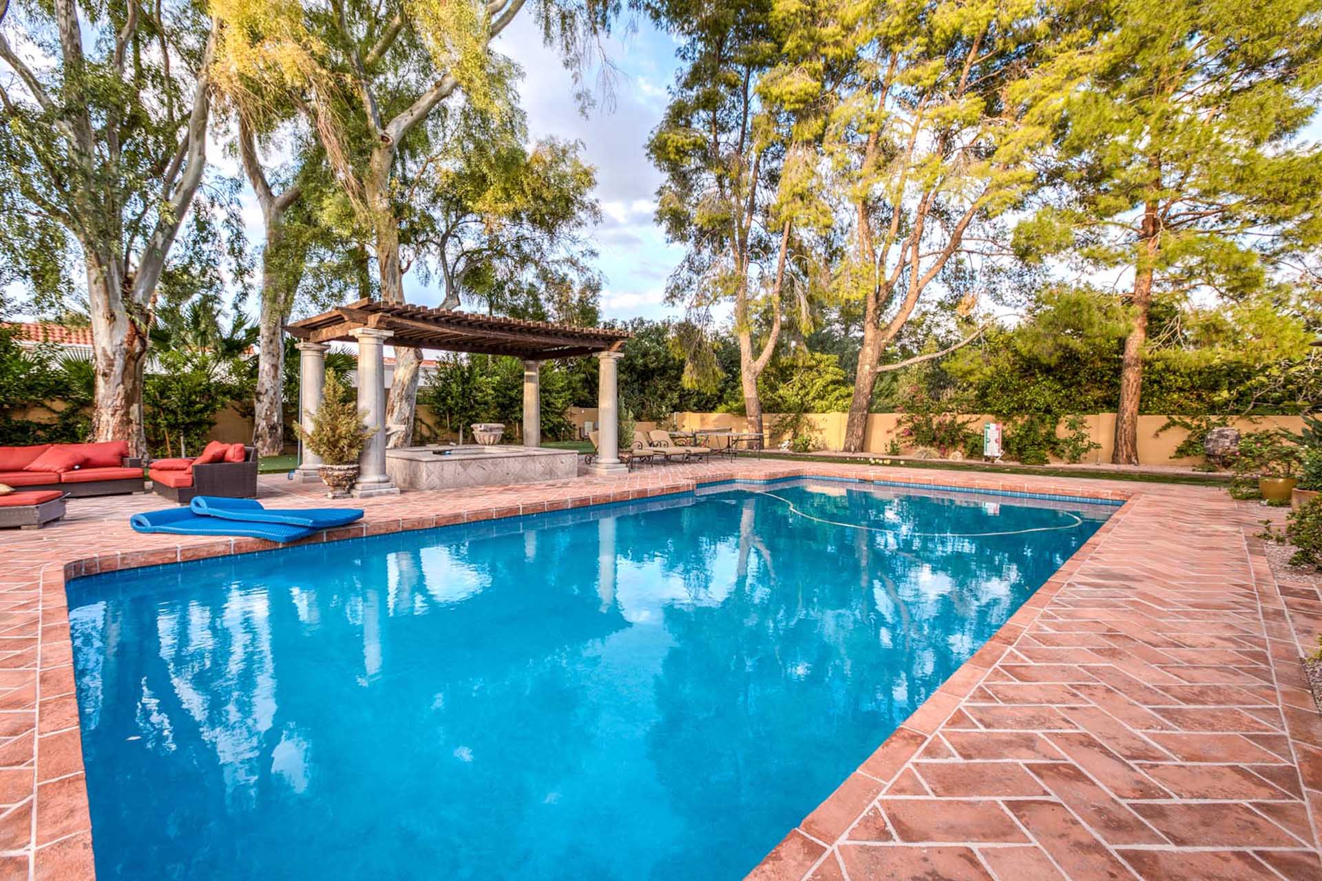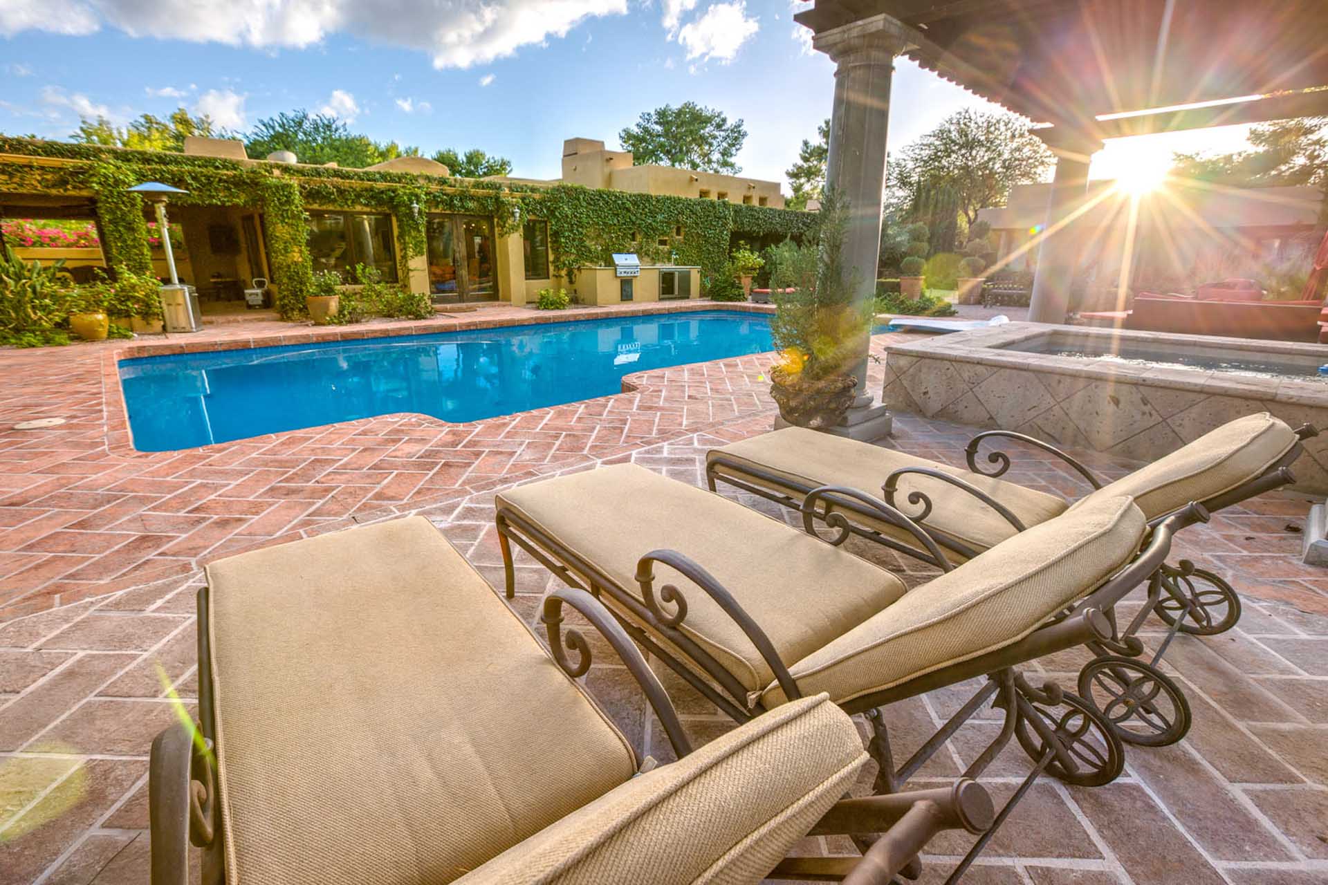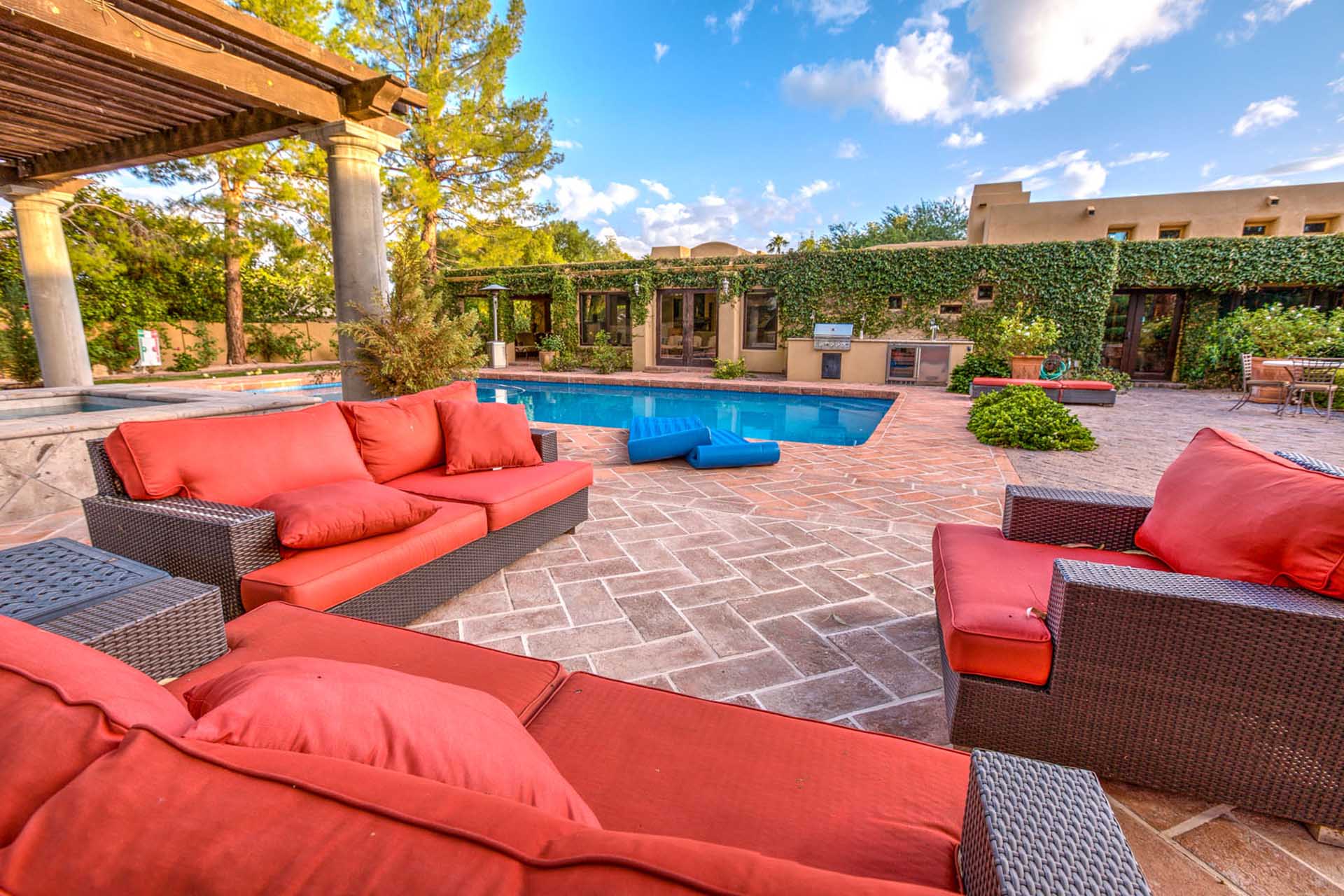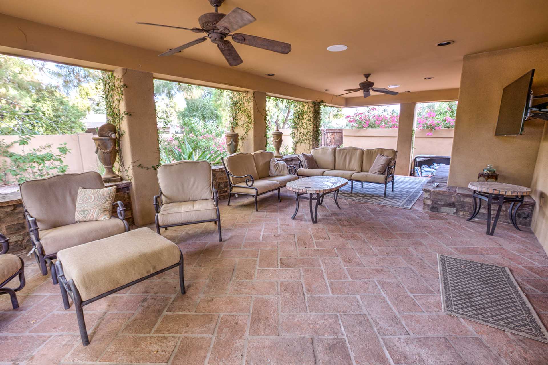 This luxury villa is nestled into the beautiful Paradise Valley landscape. This home is in a quite upscale neighborhood, perfectly placed to enjoy this Alluring Oasis. The grounds on this property are covered in perfectly landscaped serenity mixed with great entertaining features like Bocce Ball, putting green, pool & spa, great BBQ area and outdoor living space with TV. The home boast 6 bedrooms between the main home and the guest casita. This home has it all for you next vacation. Note- Fireplaces not operable and are not for guest use.