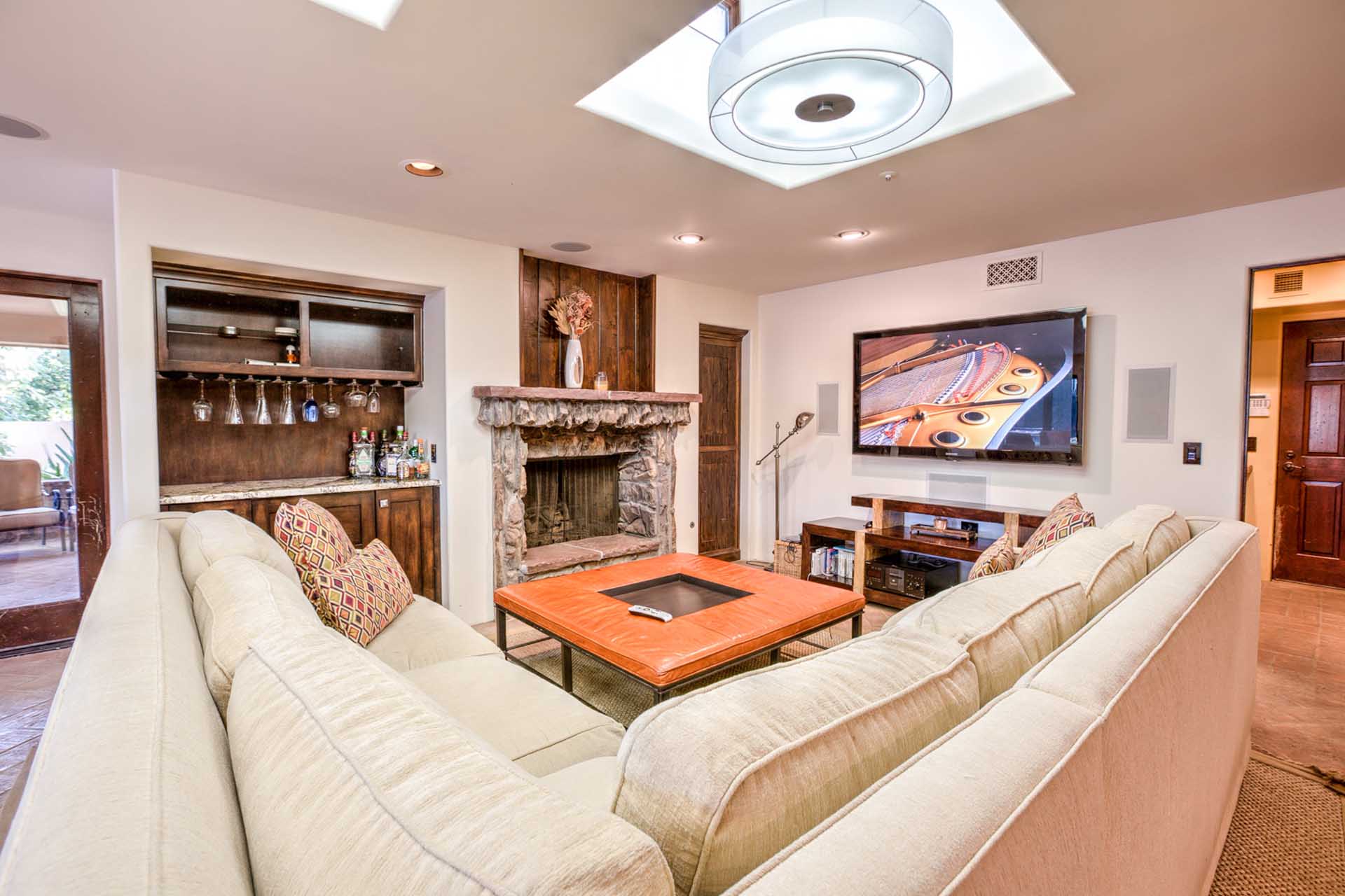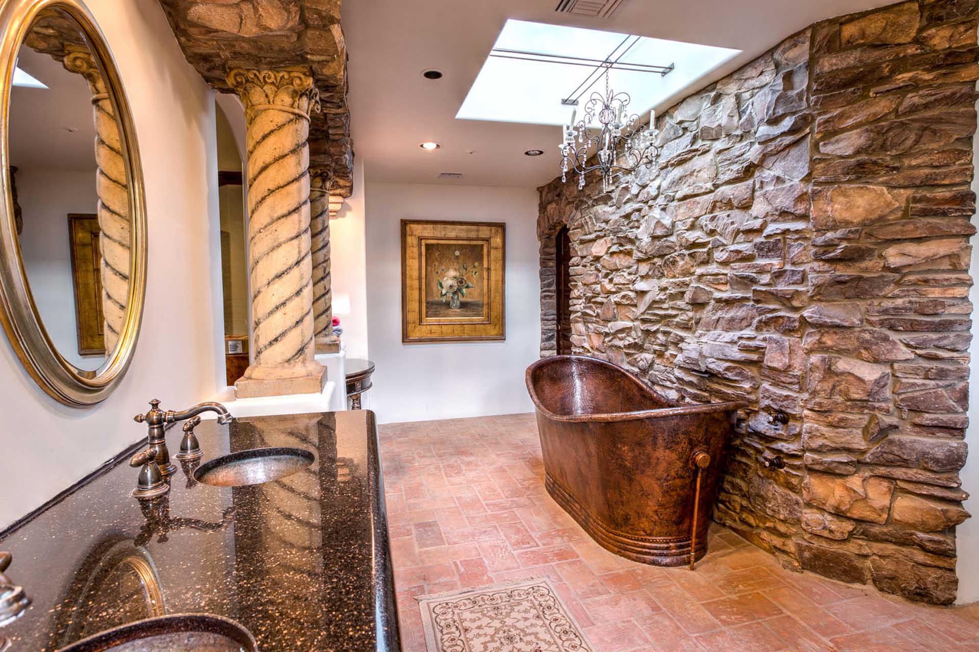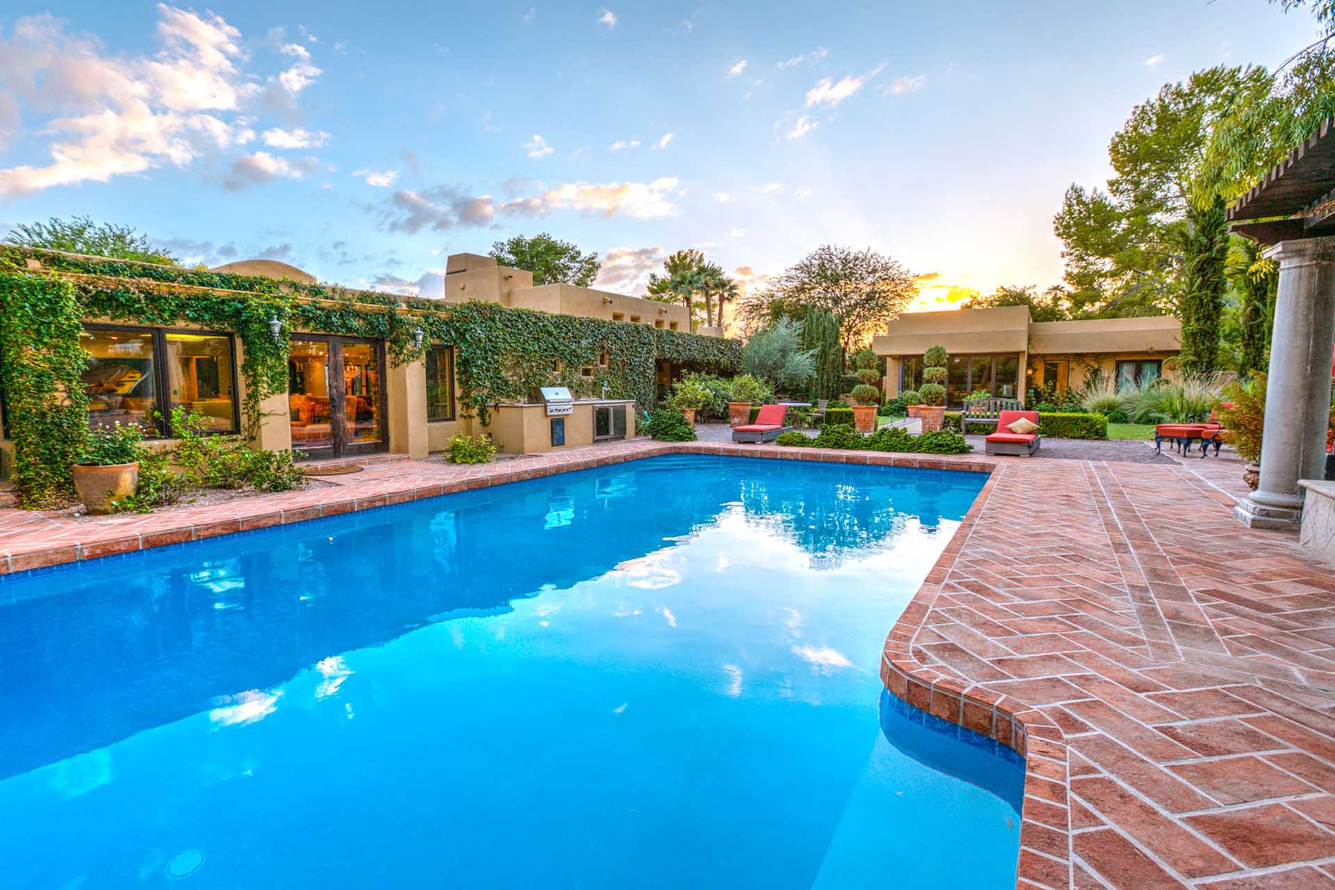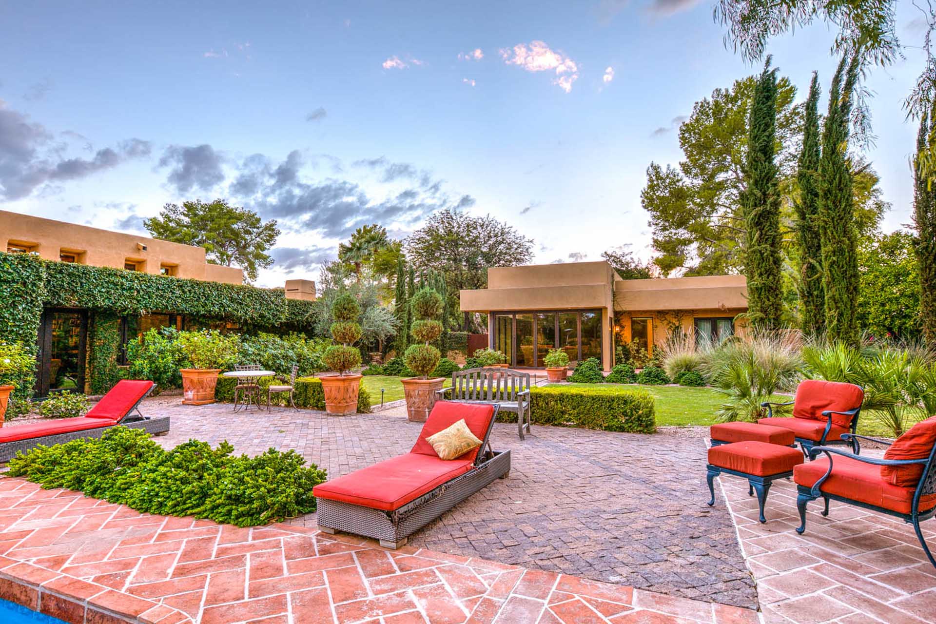 This luxury villa is nestled into the beautiful Paradise Valley landscape. This home is in a quite upscale neighborhood, perfectly placed to enjoy this Alluring Oasis. The grounds on this property are covered in perfectly landscaped serenity mixed with great entertaining features like Bocce Ball, putting green, pool & spa, great BBQ area and outdoor living space with TV. The home boast 6 bedrooms between the main home and the guest casita. This home has it all for you next vacation. Note- Fireplaces not operable and are not for guest use.