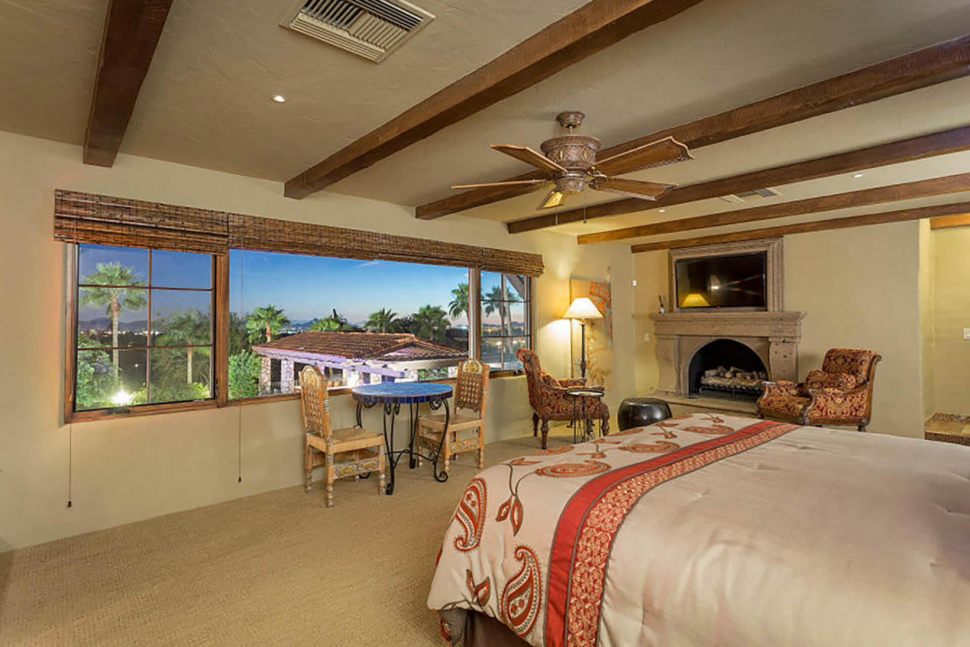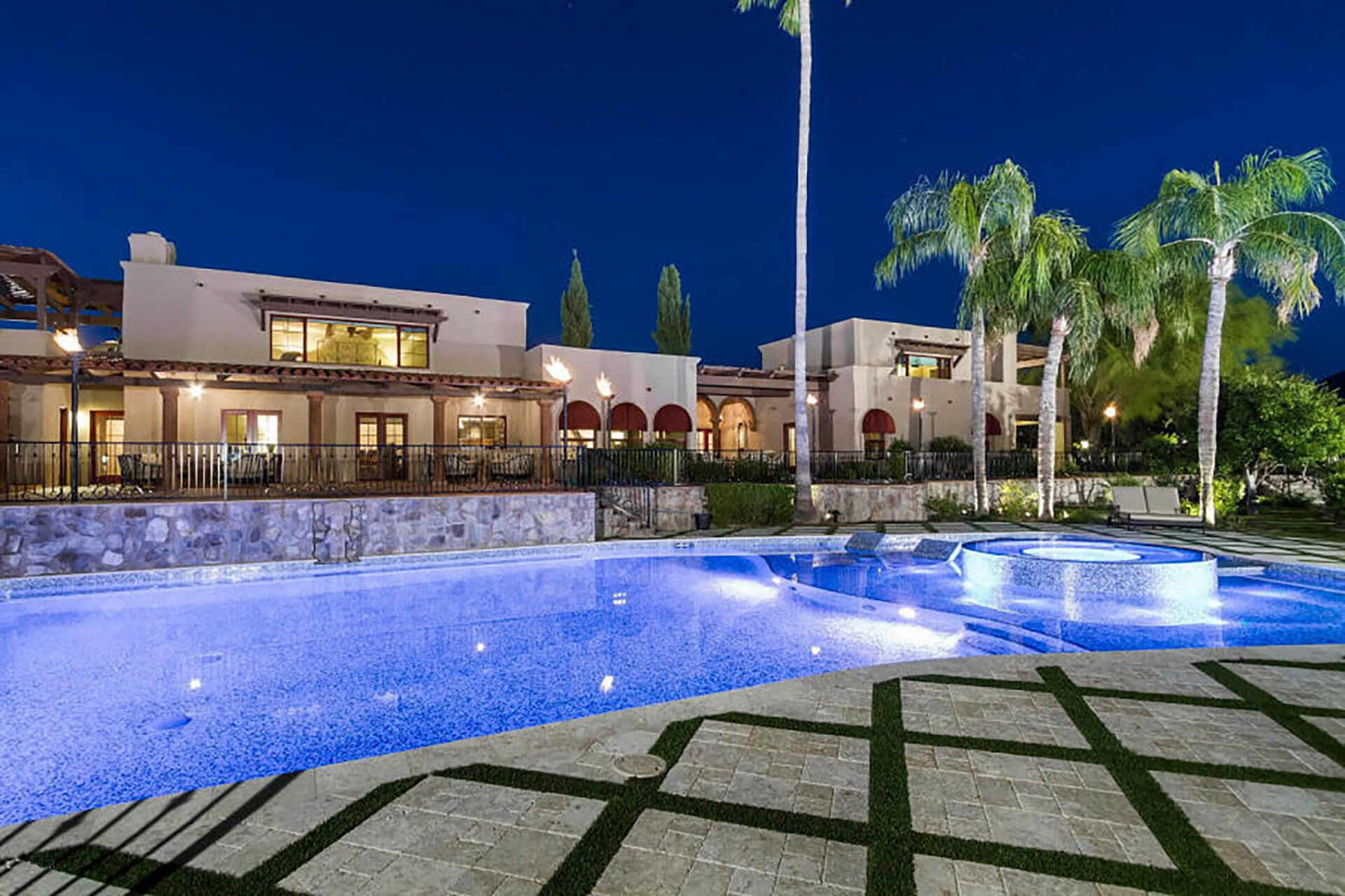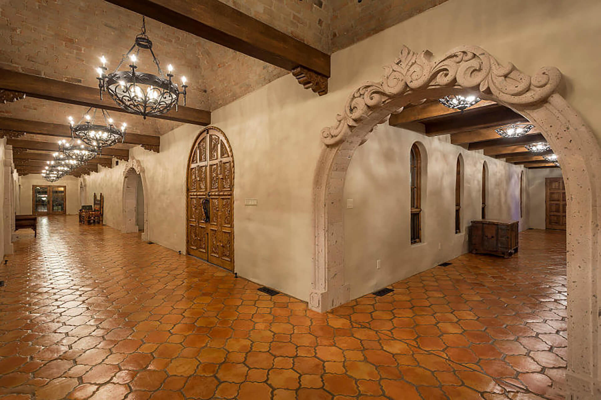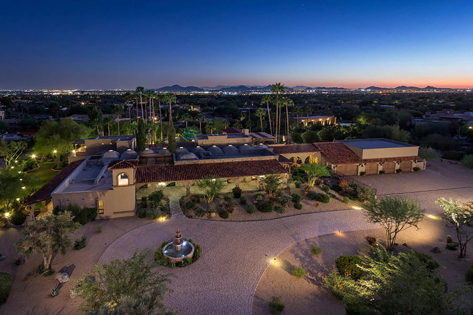 This magnificent home on over 3 acres is an authentic piece of historical architecture with stunning views. Completely restored / remodeled with many new additions over 2.5 years to combine old world charm with state of the art amenities. 5 bedrooms, 8 baths + a den above the beautiful master suite. Fountains, hand carved mahogany doors, beamed ceilings, 120 ft grand hallway w/lighted brick arched ceiling, gorgeous new kitchen, butlers pantry, new stained saltillo flooring & soap stone/leather granite counters. Lighted Bocce court, 6 hole putting green, resort backyard, city lights, 30x60 pool/spa, 4 wet bars + an old world Mexican bar, Ramada w/ outdoor kitchen, BBQ, wine cellar & citrus tree