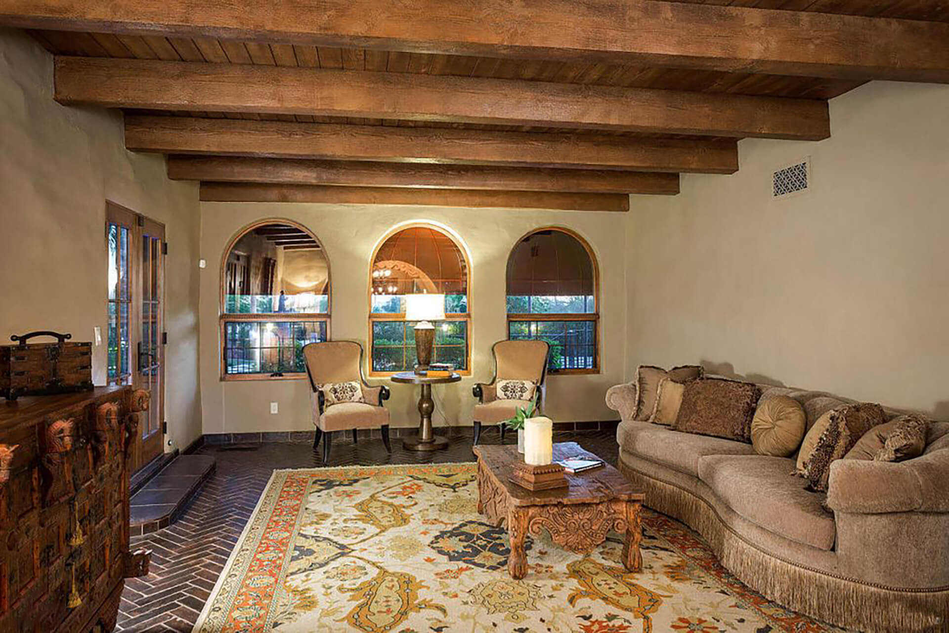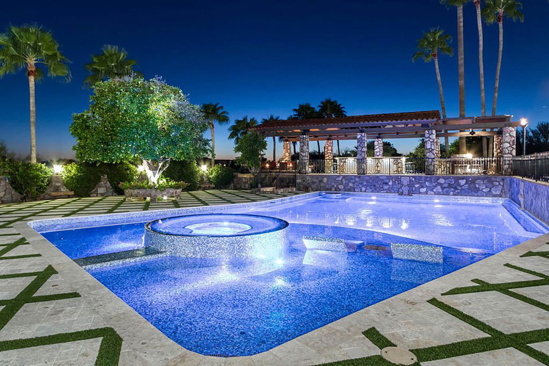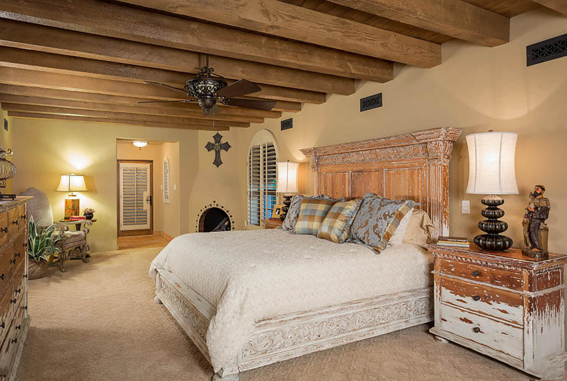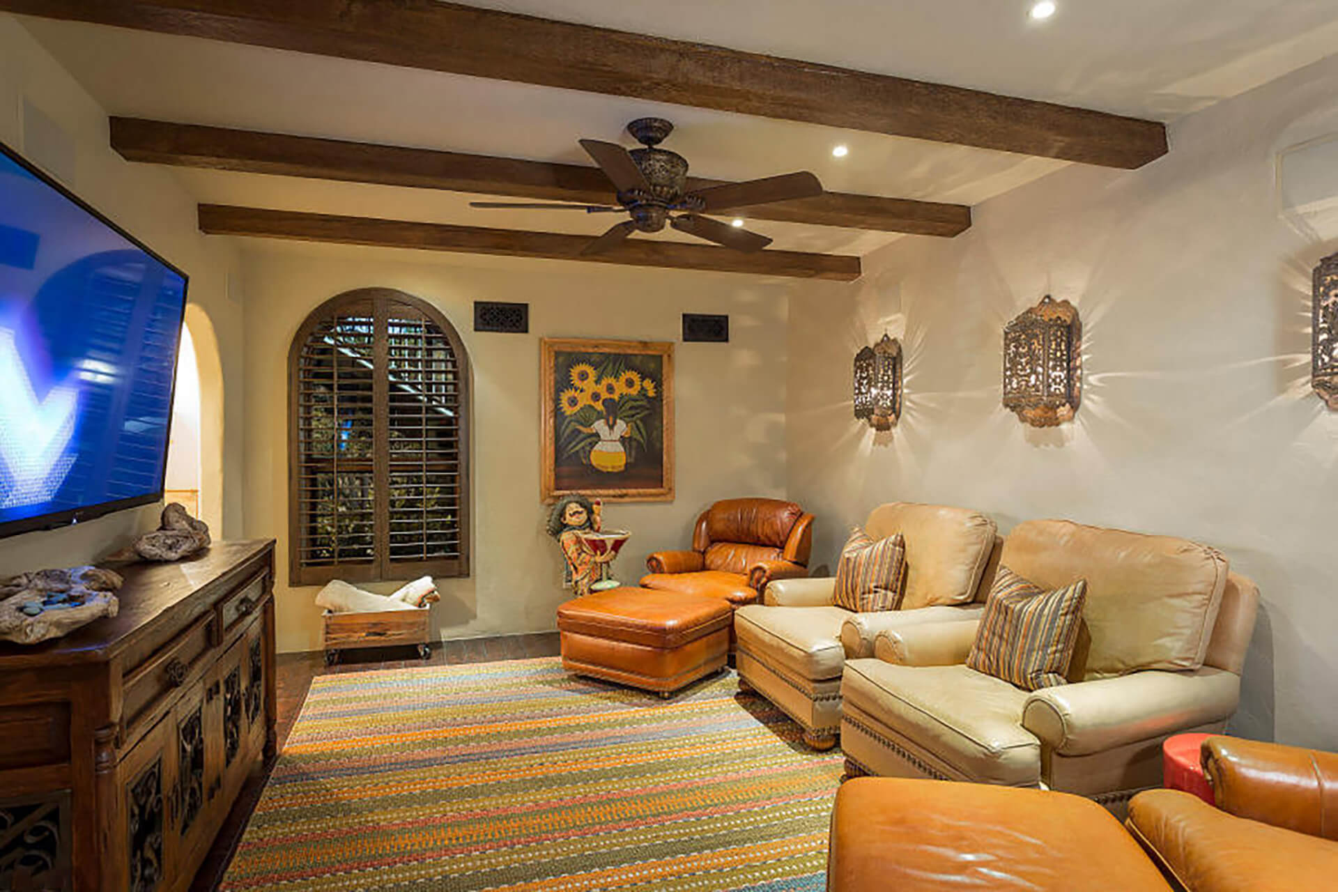 This magnificent home on over 3 acres is an authentic piece of historical architecture with stunning views. Completely restored / remodeled with many new additions over 2.5 years to combine old world charm with state of the art amenities. 5 bedrooms, 8 baths + a den above the beautiful master suite. Fountains, hand carved mahogany doors, beamed ceilings, 120 ft grand hallway w/lighted brick arched ceiling, gorgeous new kitchen, butlers pantry, new stained saltillo flooring & soap stone/leather granite counters. Lighted Bocce court, 6 hole putting green, resort backyard, city lights, 30x60 pool/spa, 4 wet bars + an old world Mexican bar, Ramada w/ outdoor kitchen, BBQ, wine cellar & citrus tree