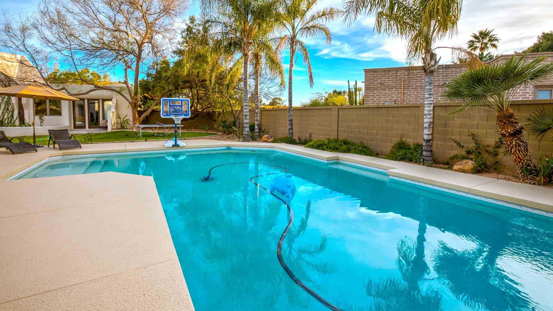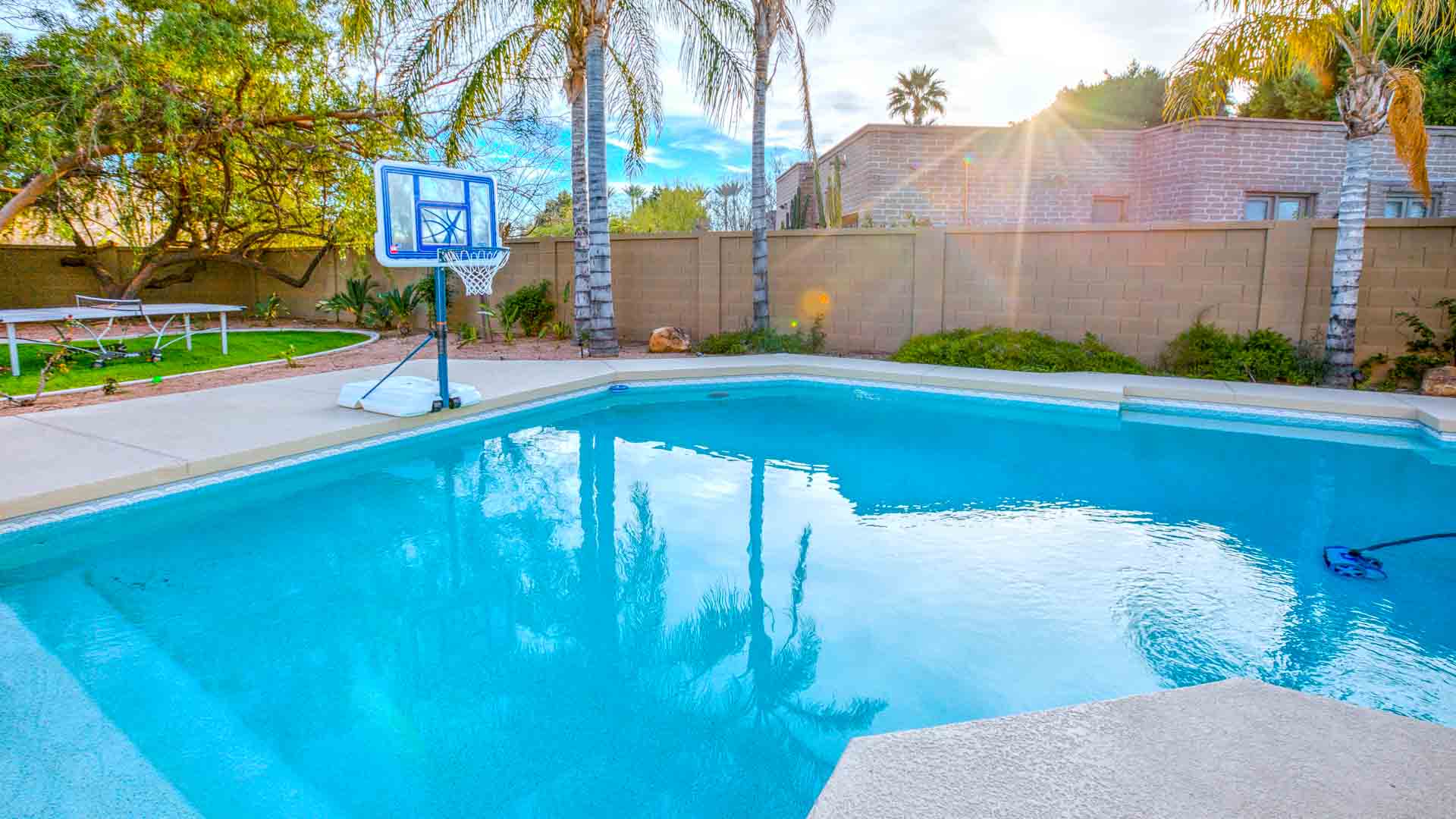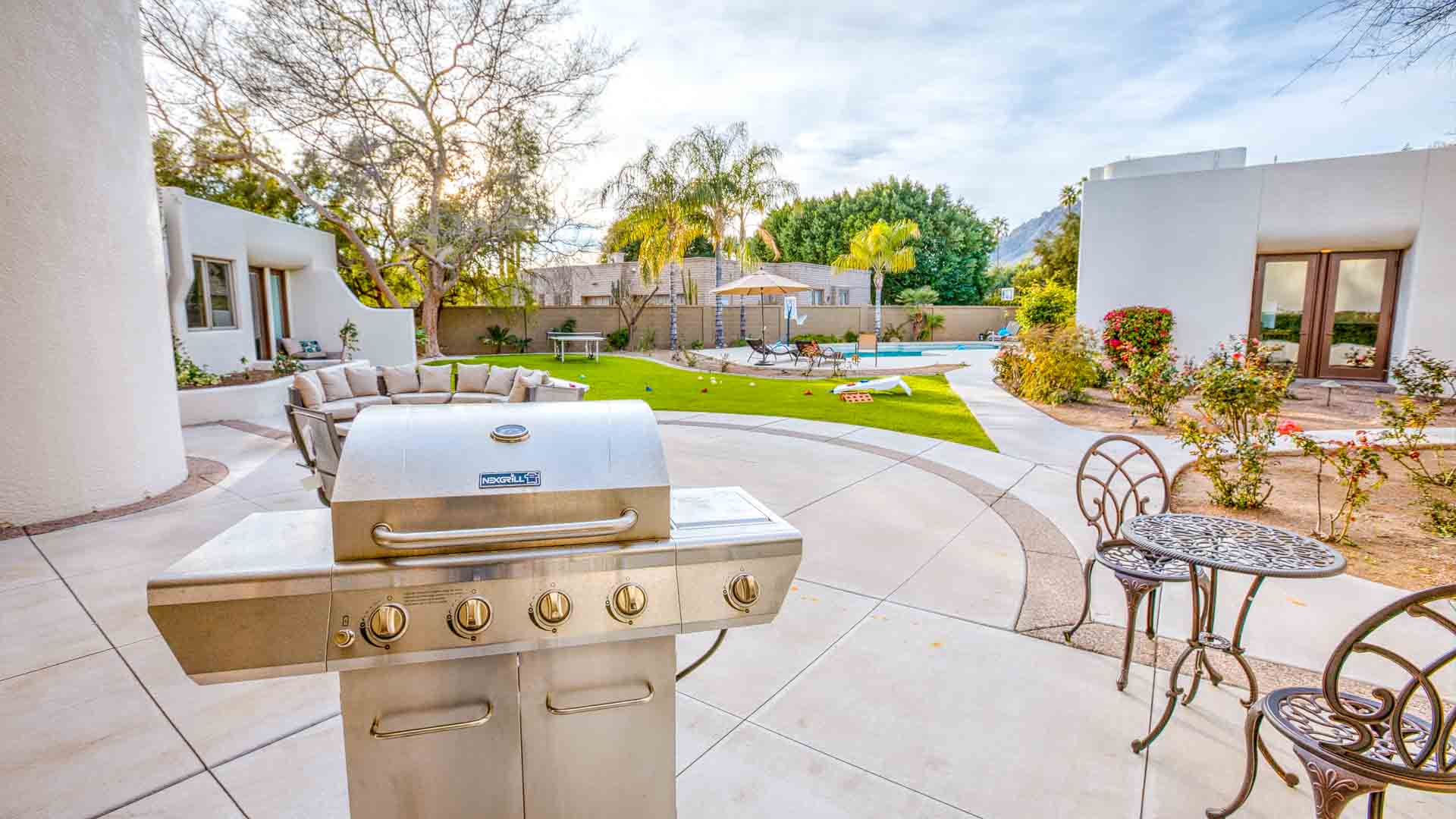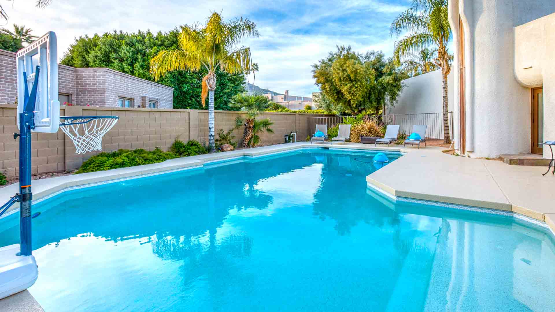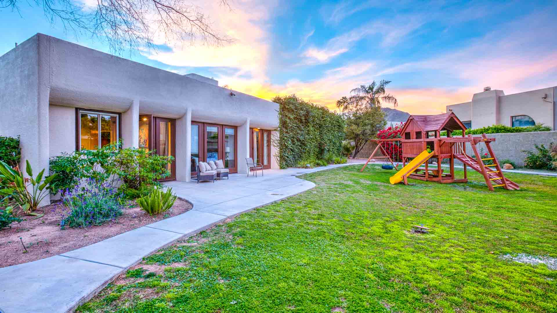 An amazing gated 1.5 acre estate in the heart of Arcadia, inspired by Frank Lloyd Wright. Walking Distance to Old Town! This home boasts over 13,000 sq ft, 8 bedrooms, 10 baths, and a guest house - all with Camelback Mountain views. There is a 9th sleeping area for extra sleeping arrangements. The kitchen is the center point of the home, with the secondary bedrooms split from the master retreat. A fun surprise is the indoor racquetball court, air hockey table & basketball hoop! Solid Brazilian Cherry wood floors. Perfect for your family rental...Large pool, a ''football field'' of grass and a path that goes around the entire property, all this while enjoying your estate surrounded by complete privacy. Welcome to your amazing vacation get-away!