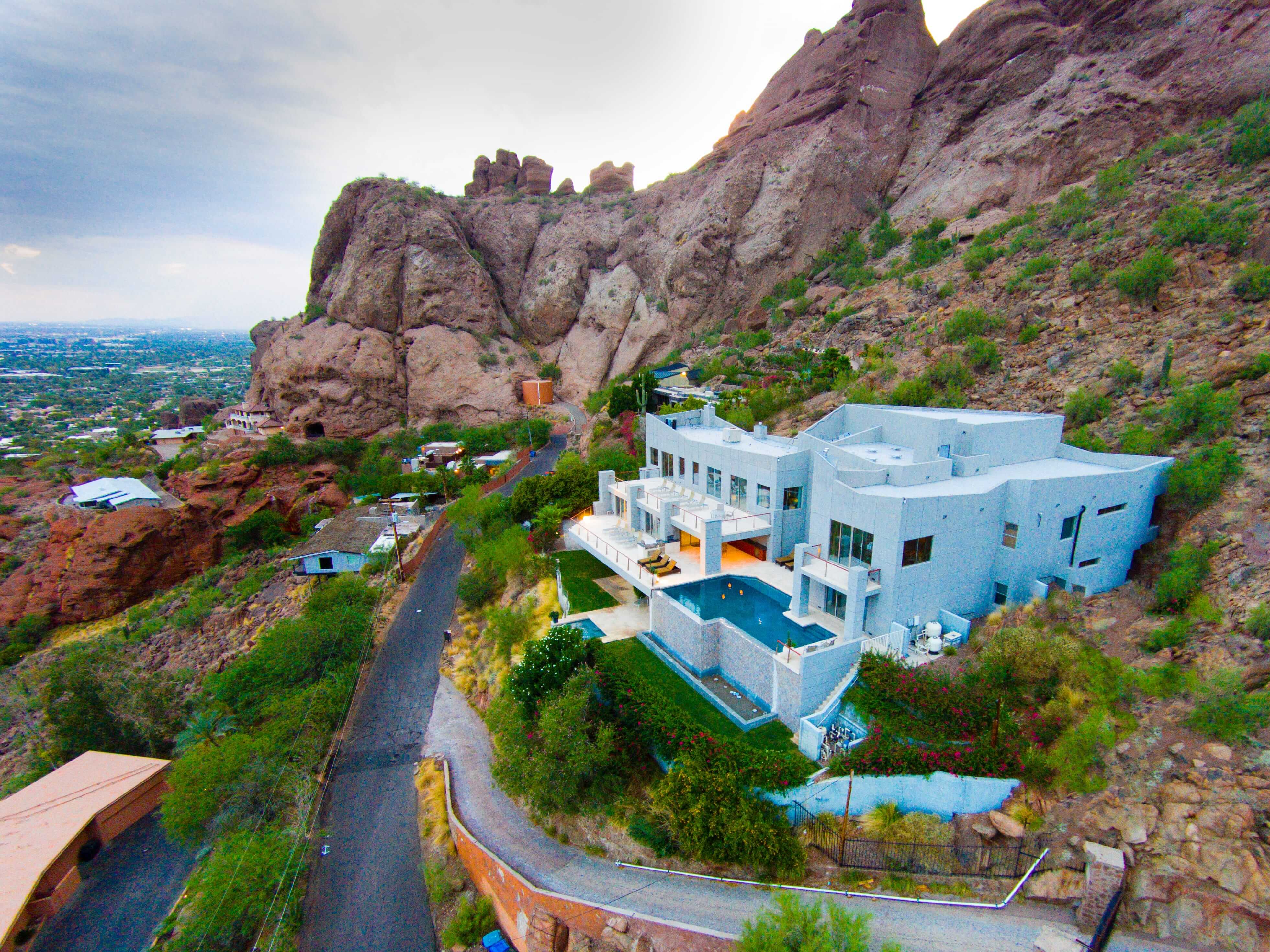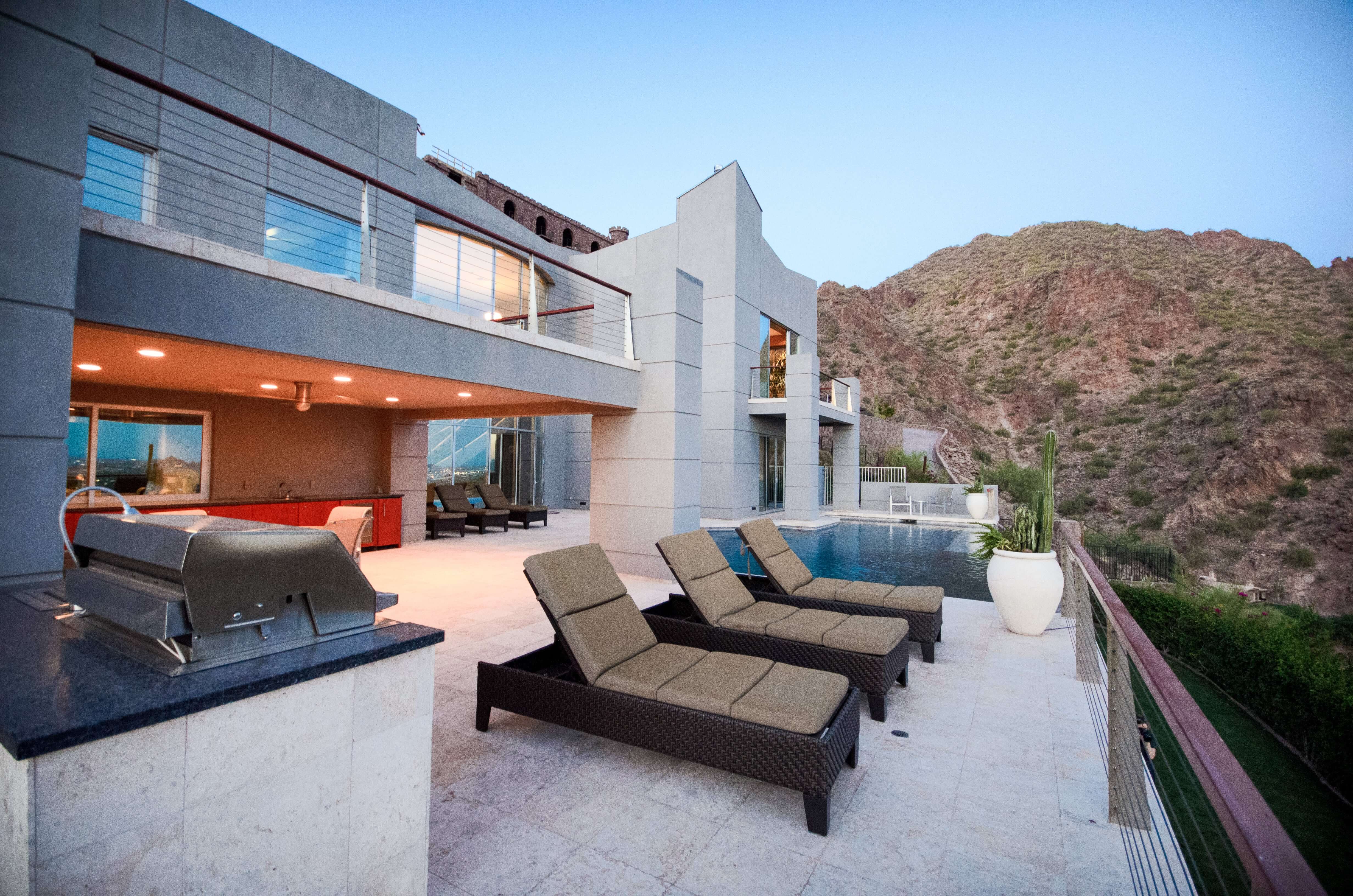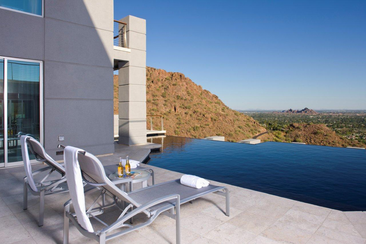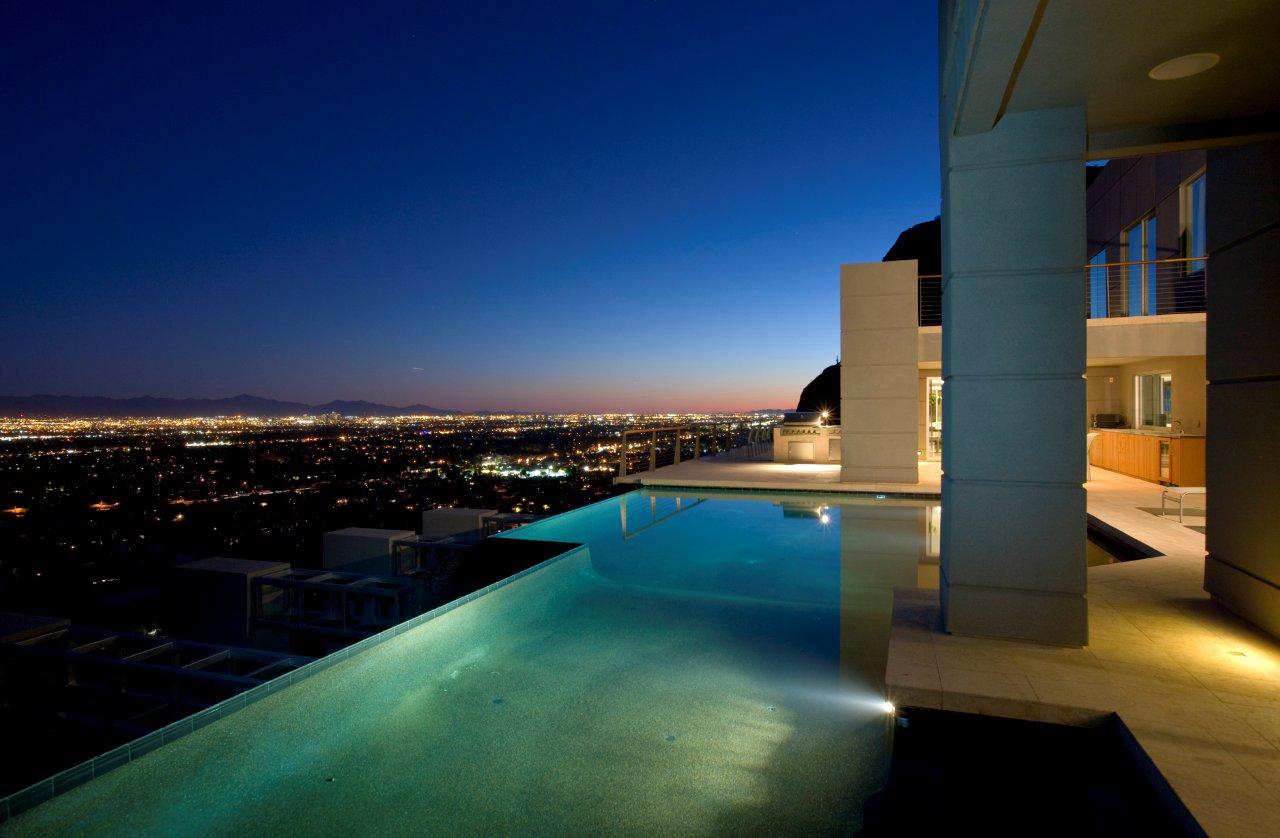 Scottsdale Manor stands high on Camelback Mountain in beautiful Scottsdale, Arizona providing amazing views of the Valley of the Sun below. This luxury vacation rental's stunning modern lines combined with an array of natural materials and soaring spaces mesh into a home of jaw-dropping beauty. Behind a coded security entrance, this property offers any and every amenity available. Just minutes away are world-class resorts with spa facilities that rival any others.