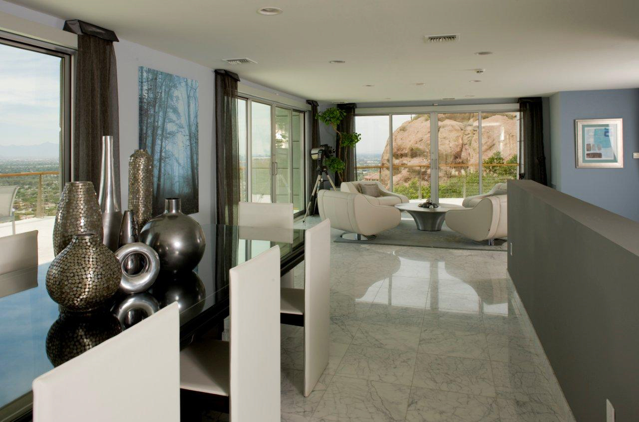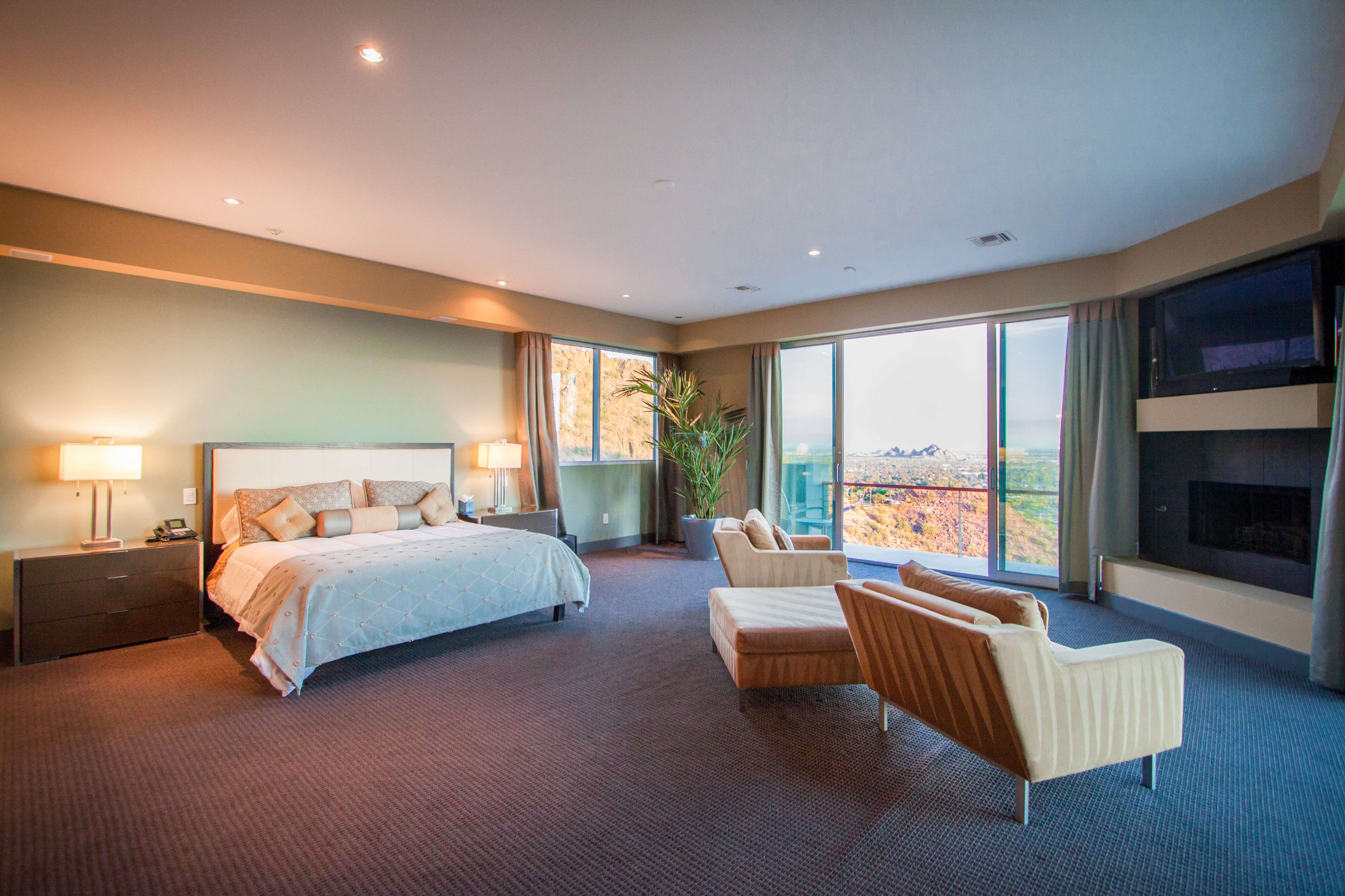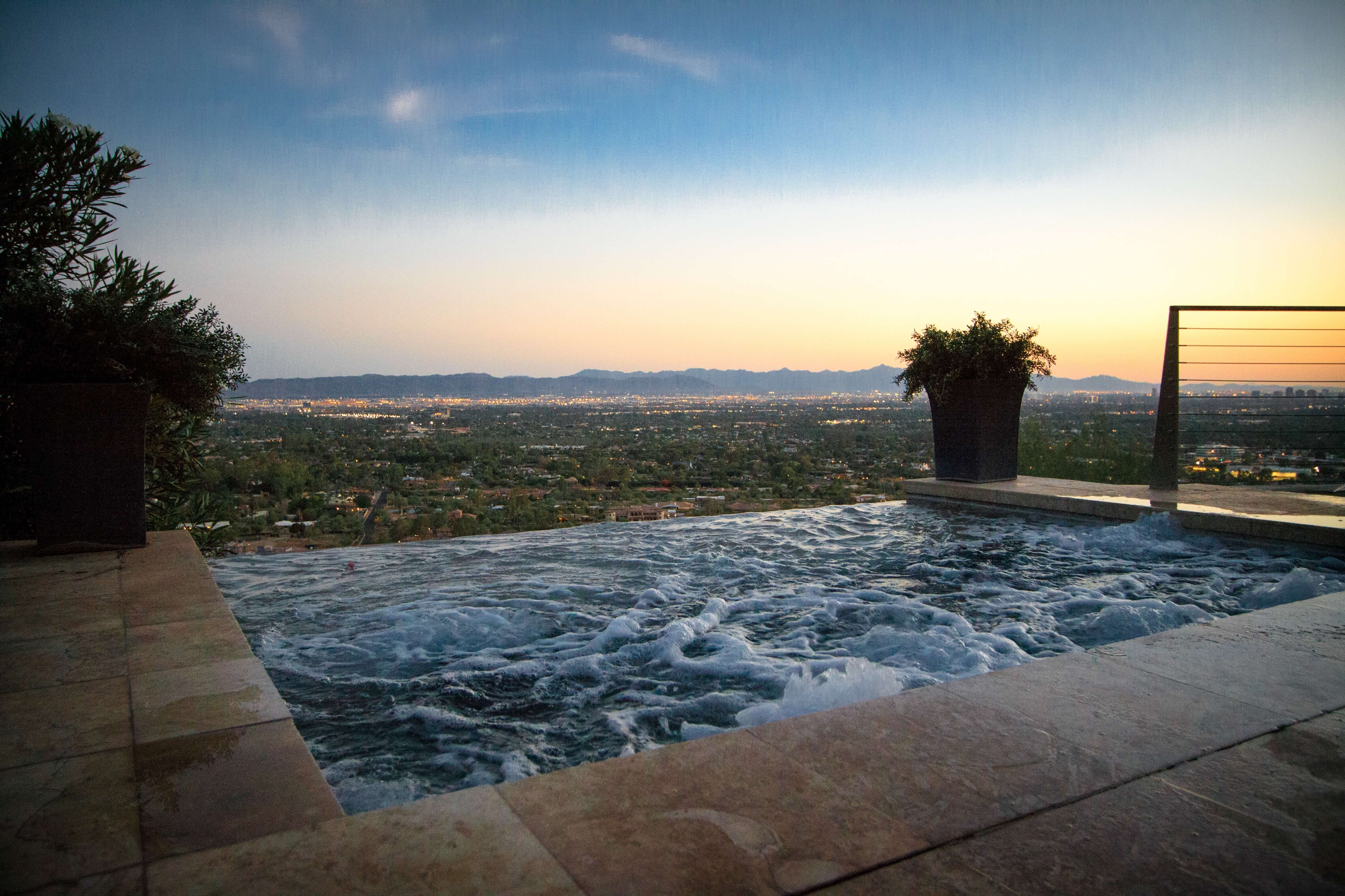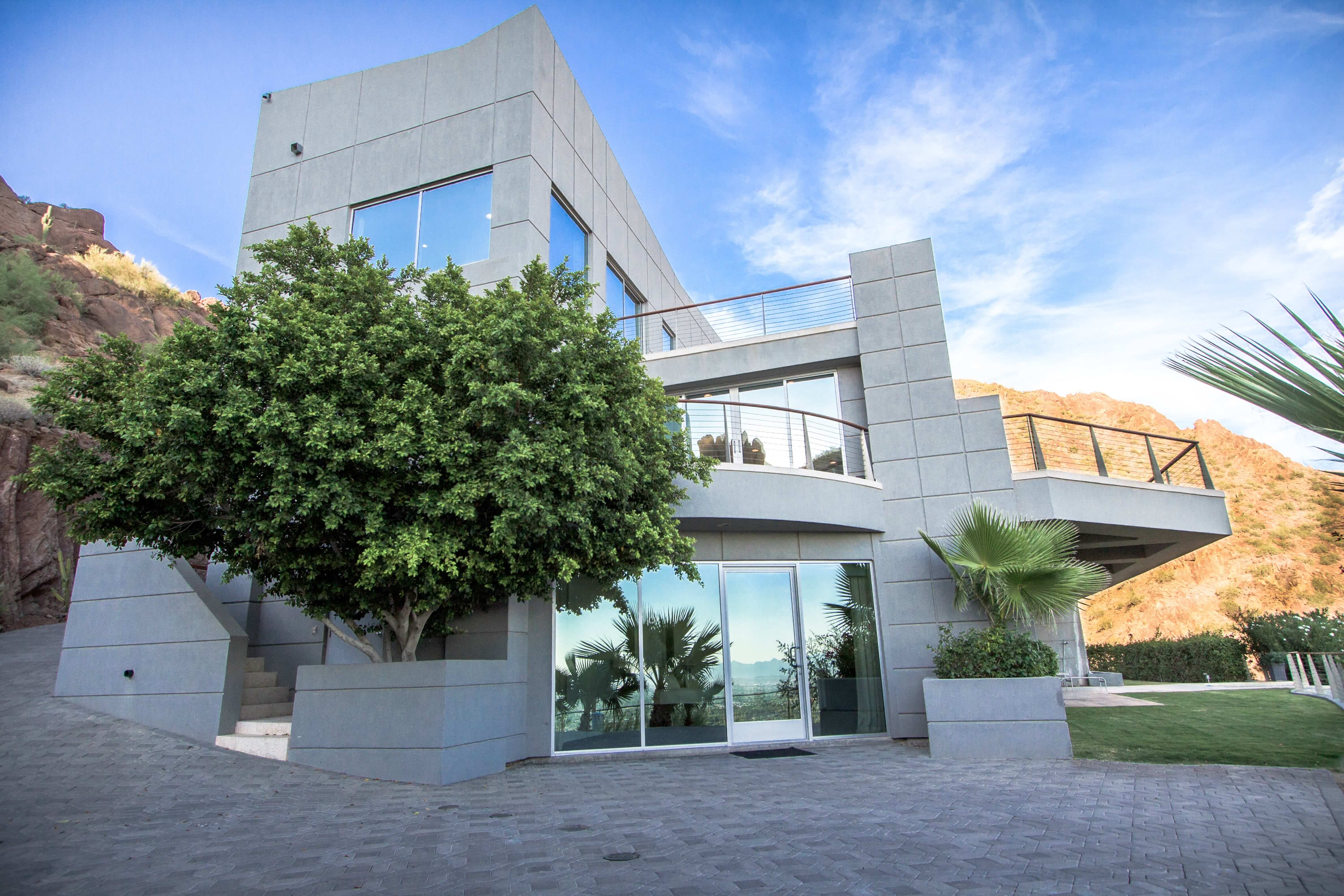 Scottsdale Manor stands high on Camelback Mountain in beautiful Scottsdale, Arizona providing amazing views of the Valley of the Sun below. This luxury vacation rental's stunning modern lines combined with an array of natural materials and soaring spaces mesh into a home of jaw-dropping beauty. Behind a coded security entrance, this property offers any and every amenity available. Just minutes away are world-class resorts with spa facilities that rival any others.