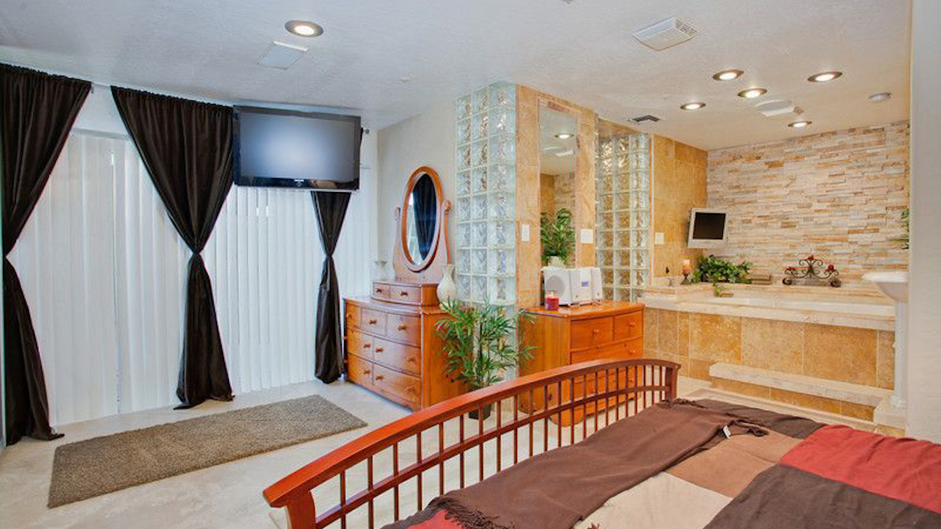 The house is 3200 sqft of fun! Everybody that walks in the door is surprised to see water falls, stripper polls, and a Ultra King bed( 11Ft. x 10Ft.). Close enough to the Old Town Entertainment District you can hear the music playing. The house is equipped with Control 4 system, all you have to do is hit a button on your ipad or iphone and it controls the water falls, lights, T.V.s and sound system.