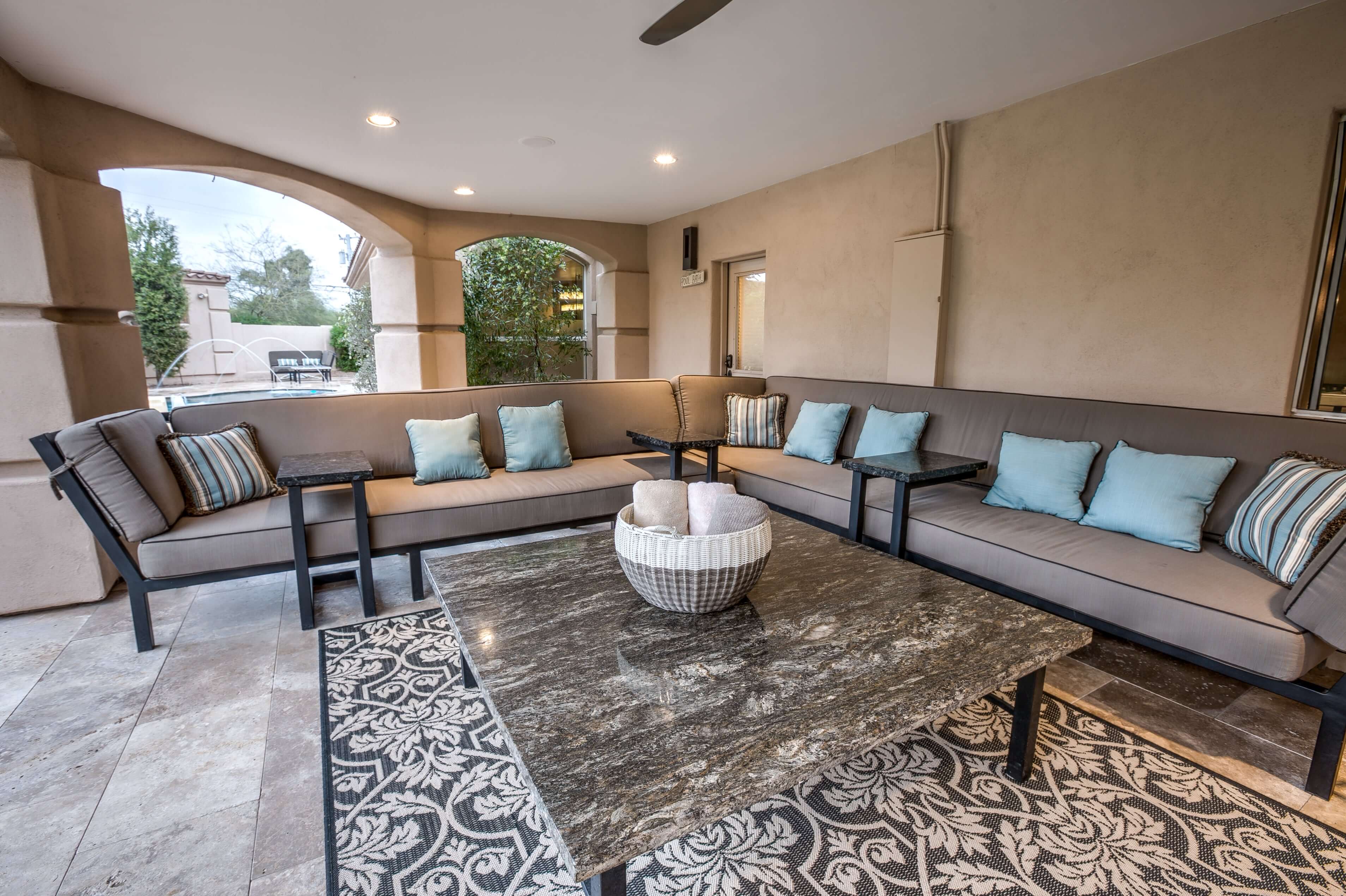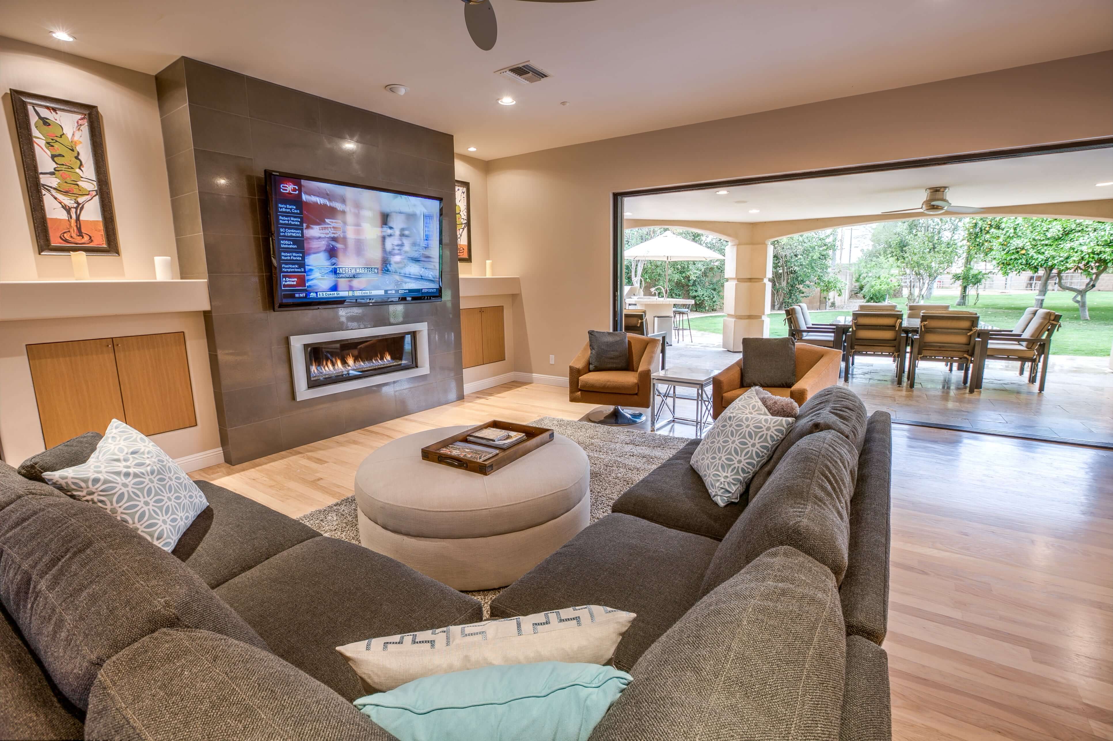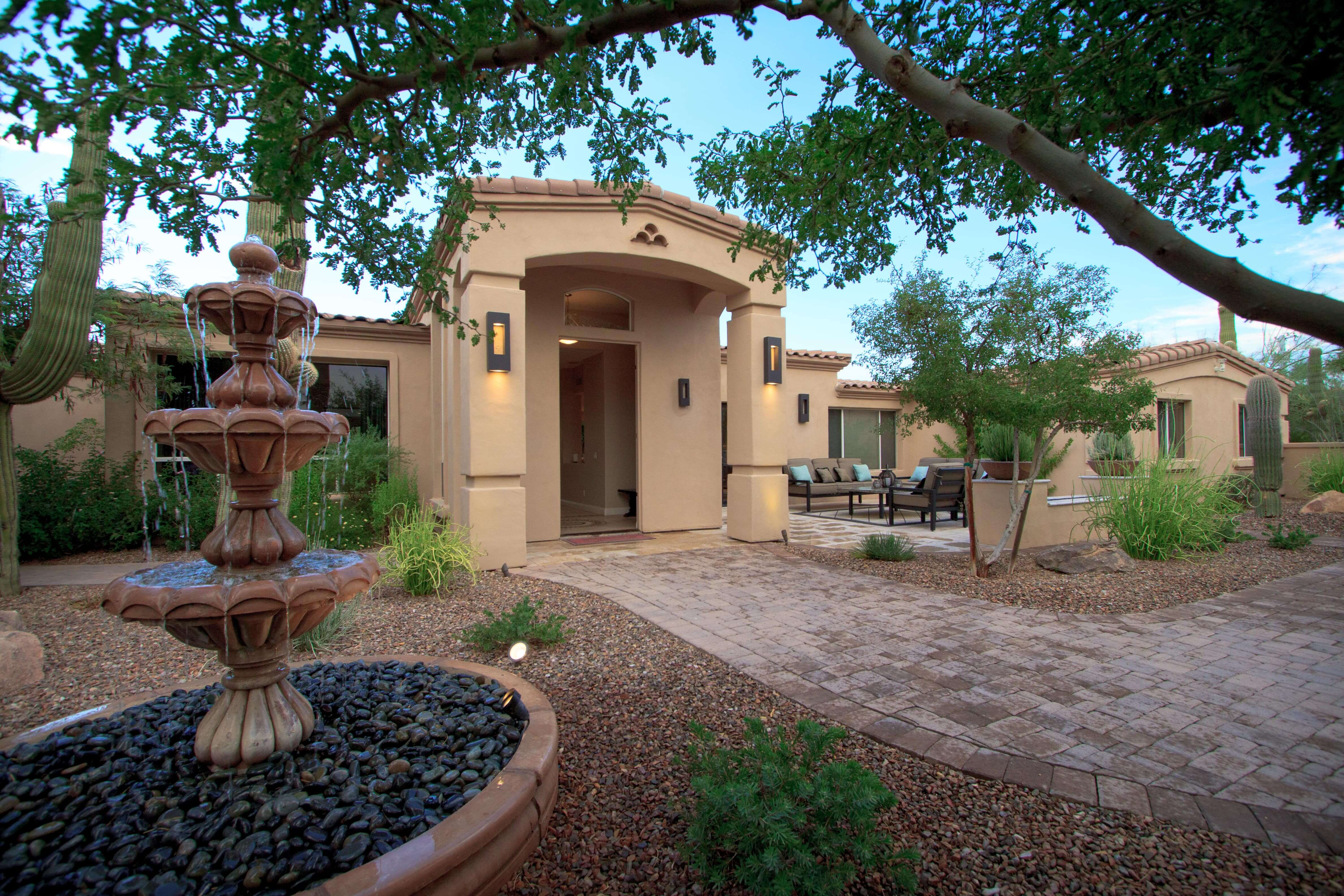 This beautiful sprawling ranch estate is centrally located in Scottsdale with plenty of space. The Ranch features a main house with 5 bedrooms and 2.5 bathrooms as well as separate guest house that has 2 bedrooms and 2 bathrooms. This house was built to entertain. Open the 20ft wide pocket door to the back patio and your living room continues on into the backyard. There is great outdoor seating areas in the front courtyard, under the back patios, and surrounding the beach entry pool and spa. The outdoor kitchen, large grass area, citrus orchard, and horse corral complete your Scottsdale ranch experience.
